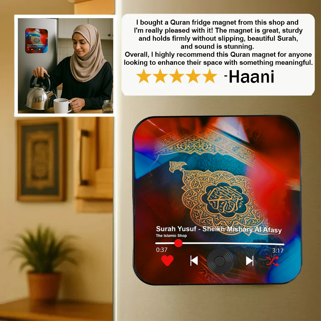 Stick the Quran Magnet on your fridge, metal surface, or stand it on your desk—wherever brings you the most peace.