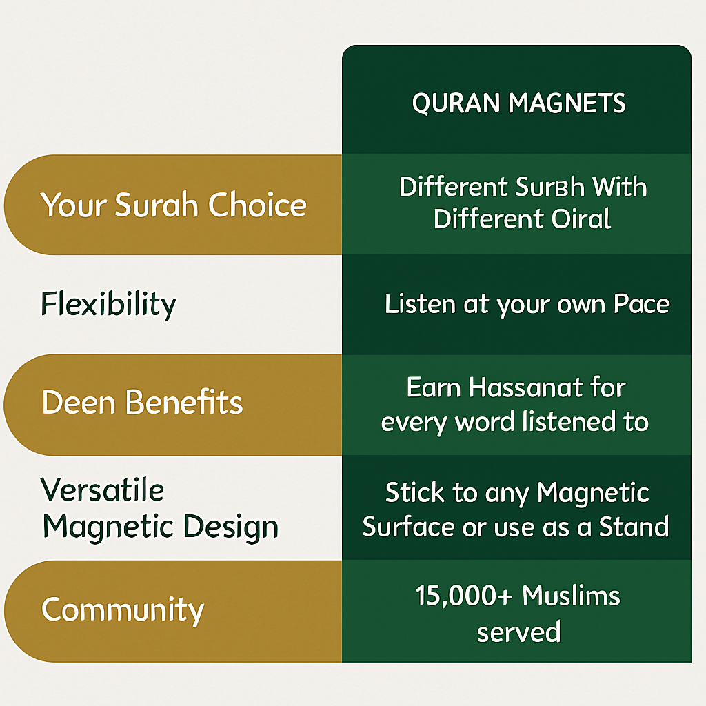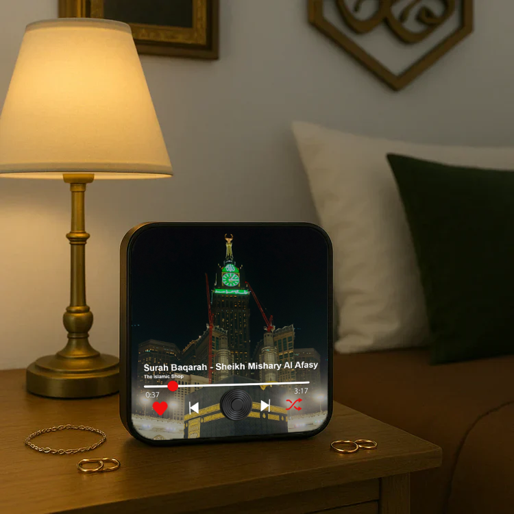 Bring daily blessings into your home with effortless Quranic recitation—perfect for kids, families, or quiet reflection.